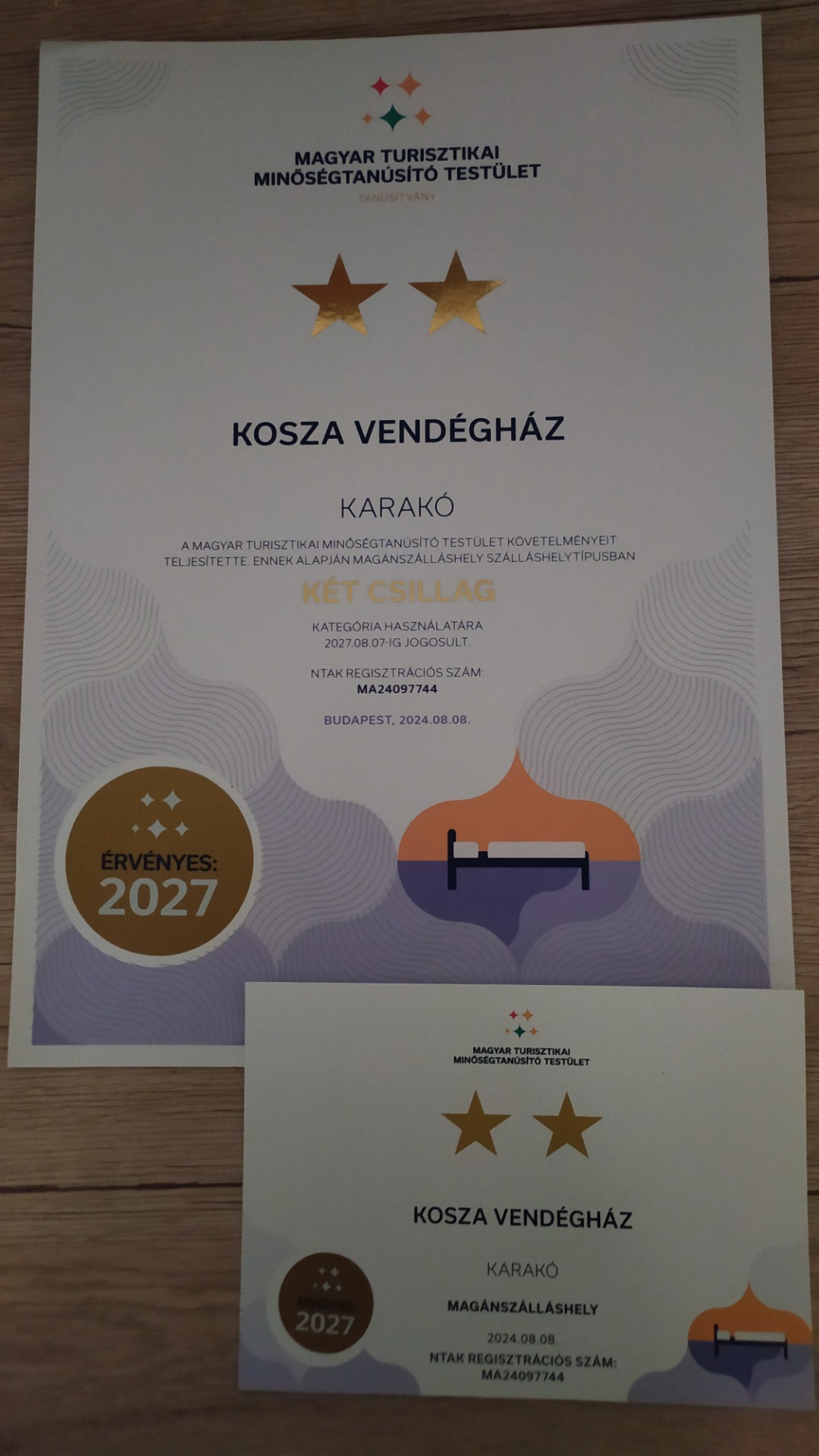 2024.08.08-án nyitottunk Vas megyében, Karakón Vendégházat. Kettő csillagos minősítéssel